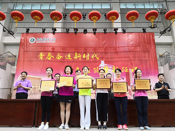 经过两天的激烈拼搏,最终决出4个单项共20个奖项。其中获得男子团体甲组前六名的队伍分别是第一附属医院、机关一总支、第二附属医院、机关三总支、人文医学学院、机关二总支。获得女子团体甲组前六名的队伍分别是第一附属医院、口腔医学院、机关三总支、第二附属医院、人文医学学院、第四附属医院。校领导队、临床医学院、药学院、第四附属医院分获男子团体乙组前四名。获得女子团体乙组前四名的队伍则是临床医学院、机关一总支、继续教育学院、机关二总支。