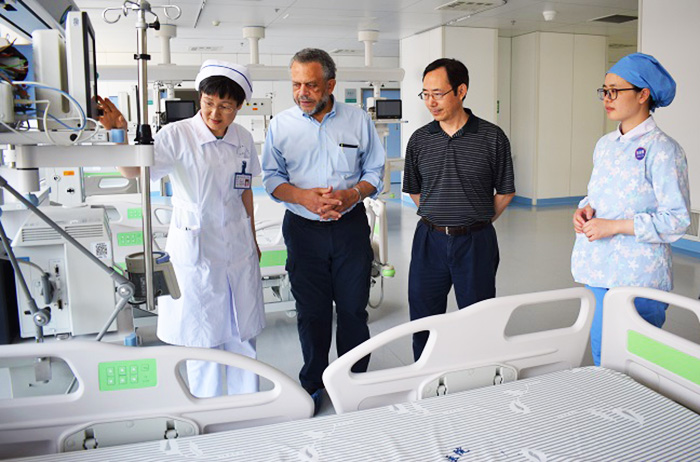 来访专家一行还赴第一附属医院高新院区参观了候诊区药房、检验科、重症病区、肿瘤病区等区域,并对我校附属医院的建设和发展情况表示赞赏。