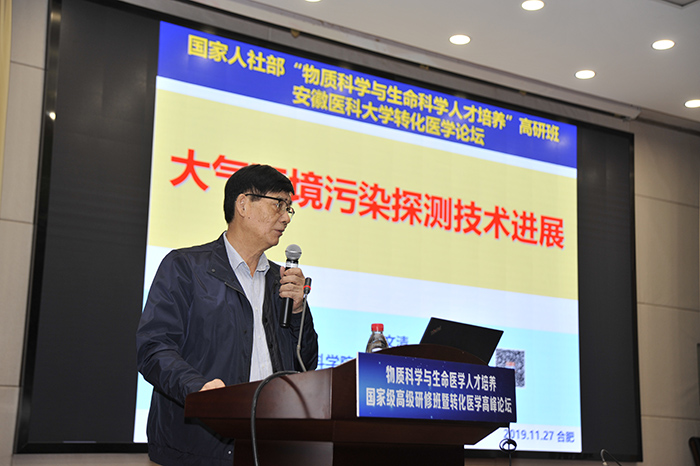 11月27日,由省人力资源和社会保障厅、合肥市人力资源和社会保障局以及我校联合主办的“物质科学与生命医学人才国家级高研班暨转化医学高峰论坛”在我校举行。中国工程院院士、中国科学院安徽光学精密机械研究所研究员、所长刘文清受邀作题为《大气环境与人类健康》的论坛开场报告。省人社厅副厅长任予赞出席论坛,副校长汪凯主持论坛。