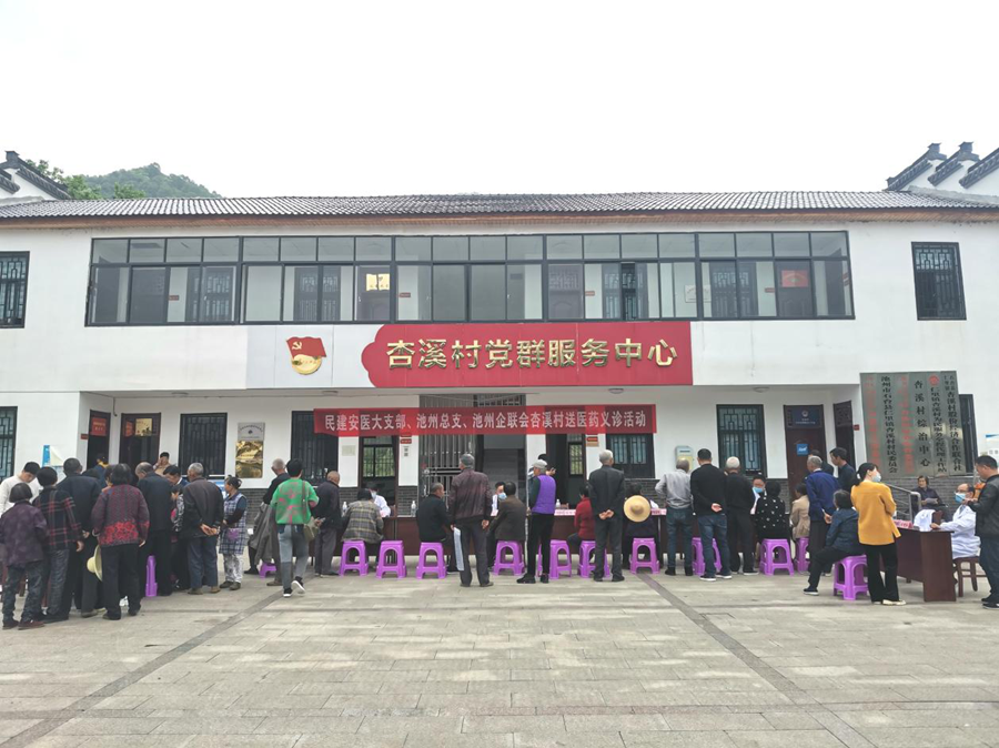 4月24日,在省委统战部的关心和积极协调下,民建安医大支部与民建池州总支联合组织安排安医第一附属医院专家团来到杏溪村,为群众送医送药,开展义诊活动。