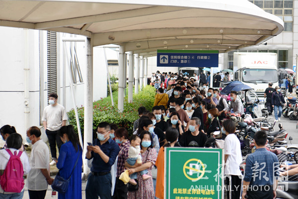 5月14日,在合肥安医大二附院,市民排队接种疫苗,现场秩序良好。