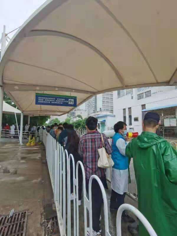 “报名参加志愿者时,对现场情况已有心理准备,但是到了之后,看到乌泱泱的排队人群,再加上天降暴雨,我真的有些担心,不知道自己能不能完成任务。但看到工作人员在雨中穿梭,我被深深地感动着!”第二临床学院志愿者朱晨玉说。