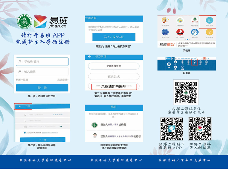 后续新生入学教育工作中,校易班发展中心将继续充分利用网络思政主阵地优势,发挥思想引领、教育教学、生活服务等方面作用,紧密结合新生军训国防教育等重要时间点,持续开展新生入学教育,在提升新生适应能力、综合素养的同时进一步加强易班推广建设工作,发展积极向上健康的校园网络文化,引导新生树立理想,奋发图强,爱国荣校,共同建设安全和谐文明友善的安医校园。