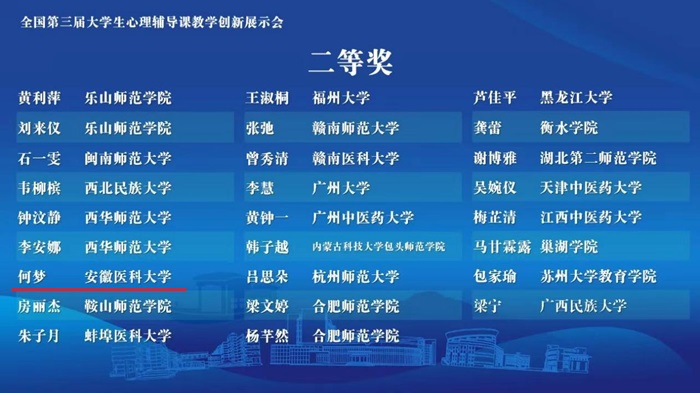 4月25日至26日,由教育部高等学校心理学类专业教学指导委员会主办的全国第三届大学生心理辅导课教学创新展示会在浙江桐乡举办。我校精神卫生与心理科学学院2022级应用心理学专业本科生何梦代表学校参赛并荣获二等奖。