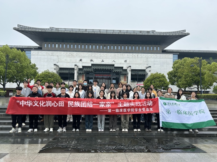 “五一”前夕,校党委学工部联合第一临床医学院,前往安徽名人馆开展“中华文化润心田 民族团结一家亲”少数民族师生实践活动,深入学习贯彻习近平总书记关于加强和改进民族工作的重要思想和党的二十大精神,通过实地参观、现场感受,加强铸牢中华民族共同体意识教育。