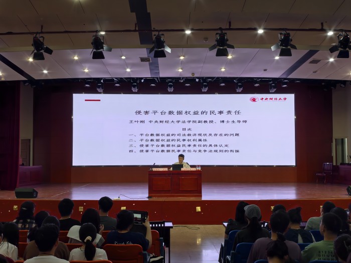 报告中,王叶刚从《中华人民共和国民法典》《中华人民共和国反不正当竞争法》等法律的条文出发,结合平台数据权益保障的典型案例,以权益保障为中心,分析了平台数据权益地方救济的现状及存在的问题,对平台数据权益民事权利属性进行界定,在此基础上提出侵害平台数据权益民事责任具体认定的方式,并就侵害平台数据民事责任与竞争法规则的衔接问题与现场师生讨论。他还与师生进行互动,对他们学习和研究中遇到的问题予以耐心解答。报告最后,王叶刚鼓励在场学子多关注民事领域前沿问题,要将民法典与实际案例结合思考,学以致用。