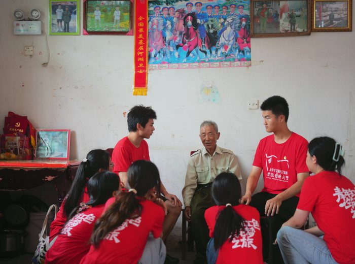 寻访退役军人,感受峥嵘岁月。实践团分别采访了志愿守护绿水青山、自制竹筏义务巡河的“全国最美基层护河卫士”李其柱,返乡后积极创业、带动贫困群众增收致富的“六安市最美退役军人”朱金春,守护群众出行安全的临泉县退役军人先锋队队长陈志堂等多位奋战在各行各业的退役军人。实践团围在身穿老式军装的李老身边,听他讲述丰富的人生经历,学习自制竹筏的方法,零距离感受古稀老人的护河情与报国心。在桑枝木耳扶贫基地,团员们了解了退役军人创业就业政策、消费帮扶赋能乡村振兴的路径,以及朱金春从白手起家到带领乡亲走向共同富裕的奋斗故事。退役军人们忠实履行党员义务、始终不忘党员初心的精神品质,让实践团成员们更加坚定了爱国拥军的信念和肩负起时代重任的决心。