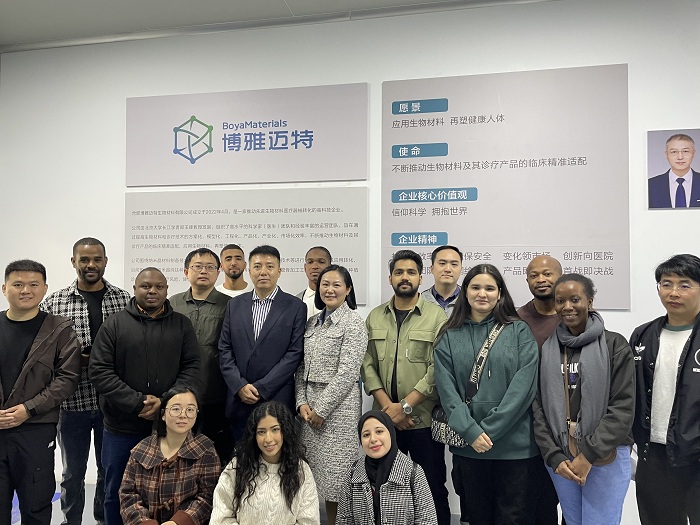 10月23日,国际教育学院副院长黄艳带队,学校来华留学研究生及相关学科指导教师前往合肥博雅迈特生物材料有限公司(以下简称“博雅迈特”)参观学习,讨论联合培养事宜。