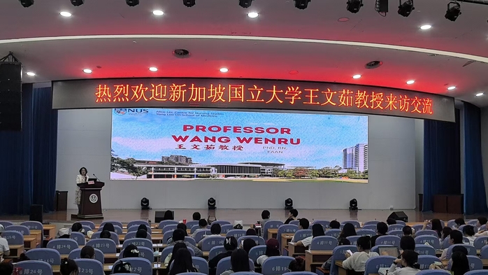 在护理学院学术报告厅,王文茹以“护理与健康科学研究中多成分复杂干预的开放与评估过程——HOM-HEMP Study”为主题开展首场讲座。她表示,护理科研课题应旨在发现并解决临床环境下对护理的真实需求与当下实践不足的矛盾,科研道路离不开热情、坚韧与定力。她还对护理学院青年教师进行针对性讲座,以新加坡国立大学护理教育体系为切入点,围绕办学历史、项目设置、教学特色、科研发展等方面内容展开。