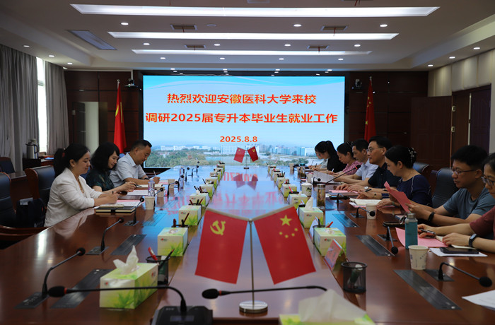 8月8日上午,副校长洪静芳前往安庆医药高等专科学校调研2025届专升本毕业生就业工作。安庆医药高等专科学校校长朱庆丰参加调研座谈。